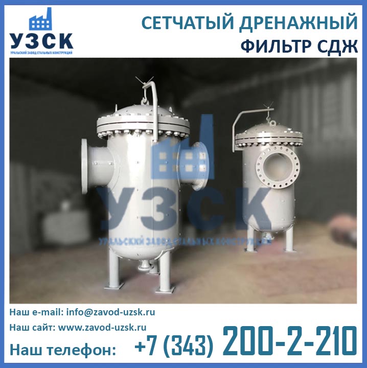 На формирование цены дренажного фильтра влияют следующие факторы: материальное исполнение, конструктивное исполнение, стоимость сырья в момент изготовления, комплектация, необходимость доставки в другой населенный пункт, срочность выполнения работ по изготовлению, прочие предпочтения заказчика. Уральский завод стальных конструкций изготавливает фильтры СДЖ-700 любого типового исполнения, а также нестандартные фильтры СДЖ 700 мм по чертежам заказчика или техническому заданию. Дополнительно к фильтрам СДЖ у нас Вы можете заказать сменные фильтрующие элементы любой тонкости фильтрации, ответные фланцы, прокладки и крепеж. По запросу изготавливаем также фильтры СДЖ-К-700 с концевым затвором. Для того чтобы узнать какова цена на фильтр СДЖ Ду700 в Шахтах с необходимыми Вам характеристиками, отправьте запрос в отдел продаж завода УЗСК по координатам, указанным в разделе «Контакты».