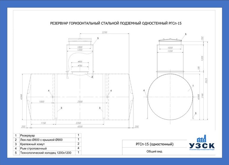 Описание стандартного резервуара РГС-15